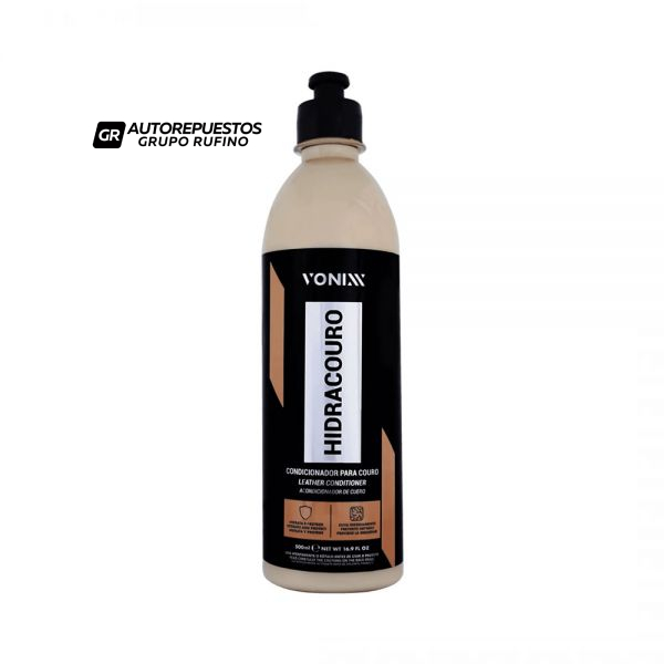 Hydracouro Vonixx es un producto desarrollado exclusivamente para cueros y/o cuerina que proporciona hidratación y protección cuyo uso especialmente se da en asientos de autos y volantes (También puede ser usado en indumentaria de cuero). Su fórmula a base de lanolina evita que el cuero se seque y lo mantiene como nuevo hasta 3 meses proporcionando el tono indicado, flexibilidad en el material y la posibilidad de conservar la originalidad a través del mantenimiento de la pieza.