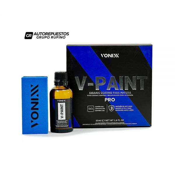 V-PAINT Pro es un revestimiento cerámico para pintura con una durabilidad de hasta 3 años, desarrollado con moléculas de silicio que recubren la superficie del vehículo y forman una barrera nanotecnológica de alta resistencia. V-PAINT Pro promueve la repelencia al agua, protección UV y brillo profundo.